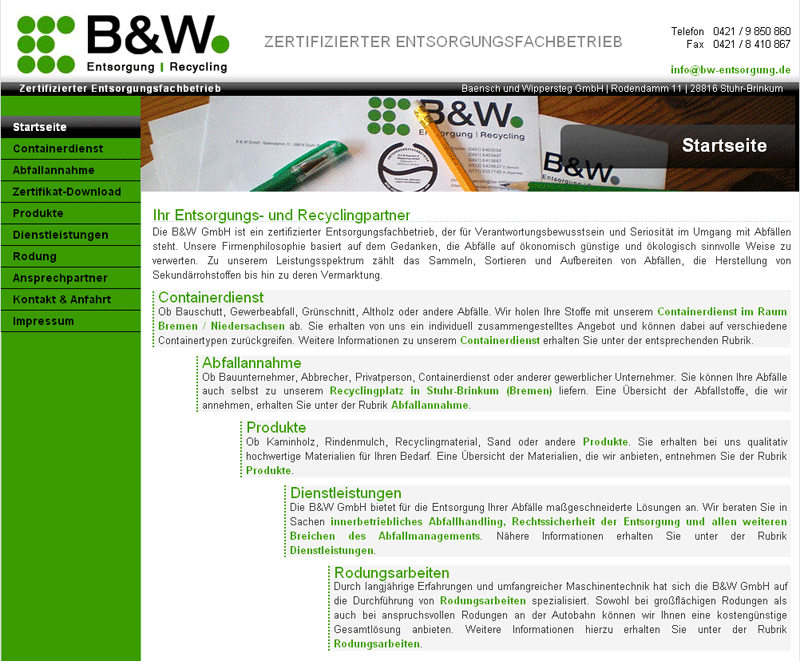 Entsorgungsbetrieb Baensch & Wippersteg (Stuhr) | ![]() | Netzwerkinstallation Hardwarebeschaffung Softwarepflege |